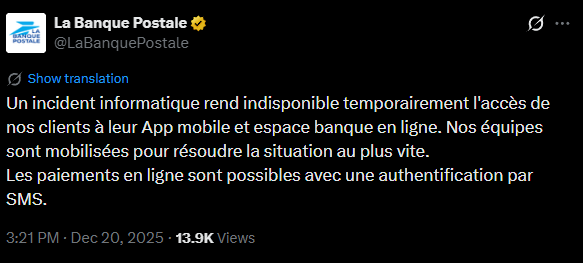 A instabilidade também atingiu a La Banque Postale, braço bancário do grupo. Clientes relataram dificuldades para acessar o internet banking e o aplicativo móvel. Apesar disso, pagamentos com cartão em terminais físicos e saques em caixas eletrônicos continuaram funcionando normalmente. Compras online também permaneceram possíveis, desde que validadas por autenticação via SMS.